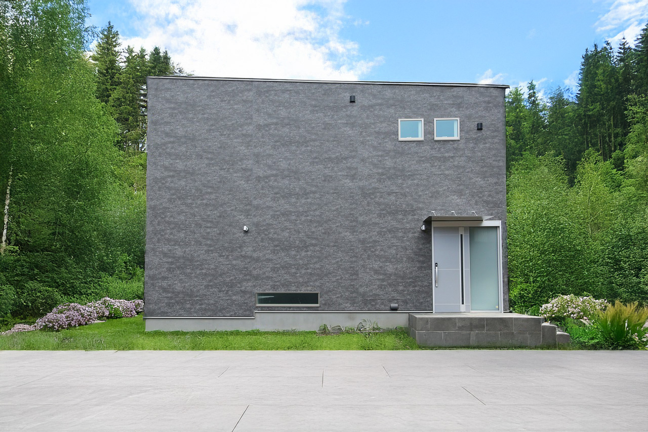 無骨なデザインに、板張りやレンガ調のアクセントを加えることで、単調になりがちな外観に表情と個性を与えることができます。