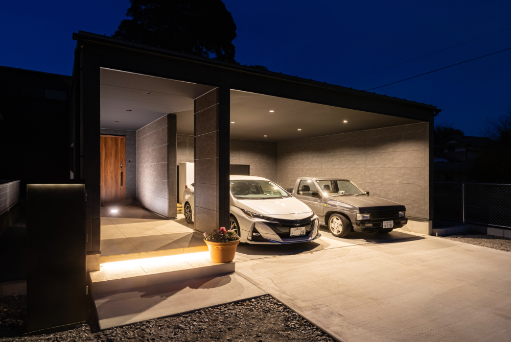ガレージから住まいへ直接アクセスできる動線は、暮らしの中でその便利さを実感できるポイント。
