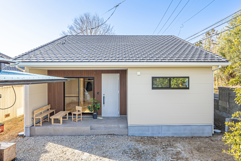 22.54坪というミニマムな平屋でありながら、瓦の大屋根が印象的な住まい。