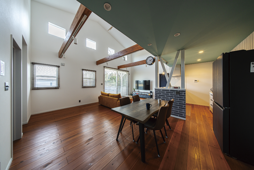 LDKを中心に生活動線をシンプルにまとめ、視線が抜けるレイアウトにすることで、実際の広さ以上の開放感を生み出しています。