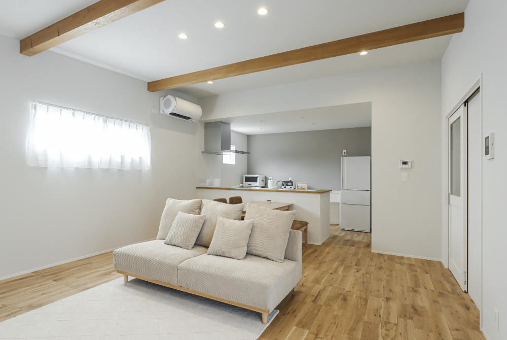 LDKには勾配天井を採用し、縦への広がりを持たせることで、実際の広さ以上の開放感を演出。